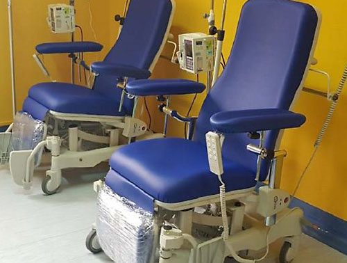 Si tratta di poltrone confortevoli e di ultima generazione, studiate per garantire comodità e sicurezza al malato oncologico durante le sedute chemioterapiche.